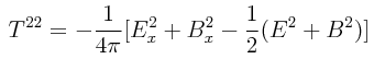 Empezaremos con el componente T11, para lo cual hacemos las substituciones α = β = 1 en la definición del tensor energía-tensión T para el campo electromagnético: